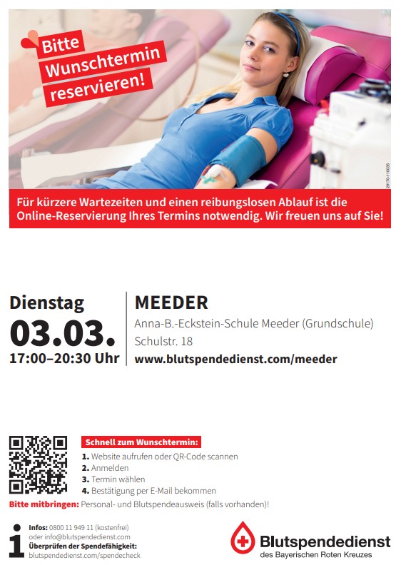 Sie sind hier: Startseite1 / News2 / Aktuelles aus dem Rathaus3 / Blutspendetermin in Meeder am 03.03.2026 von 17:00 – 20:30 Uhr