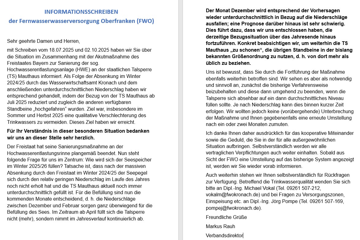 Talsperre Mauthaus wieder normalisiert und wir Sie wieder in gewohnter Weise versorgen können.